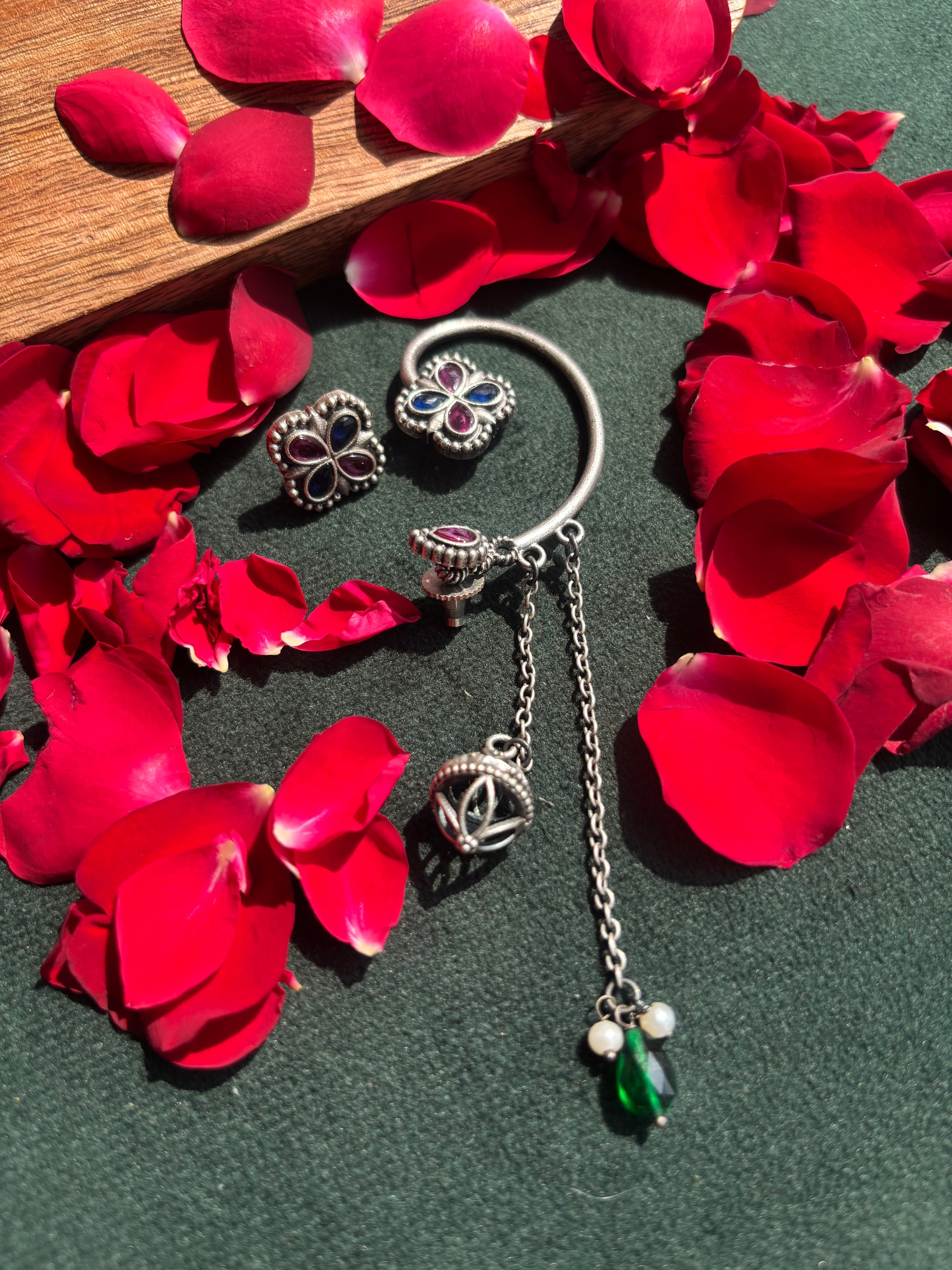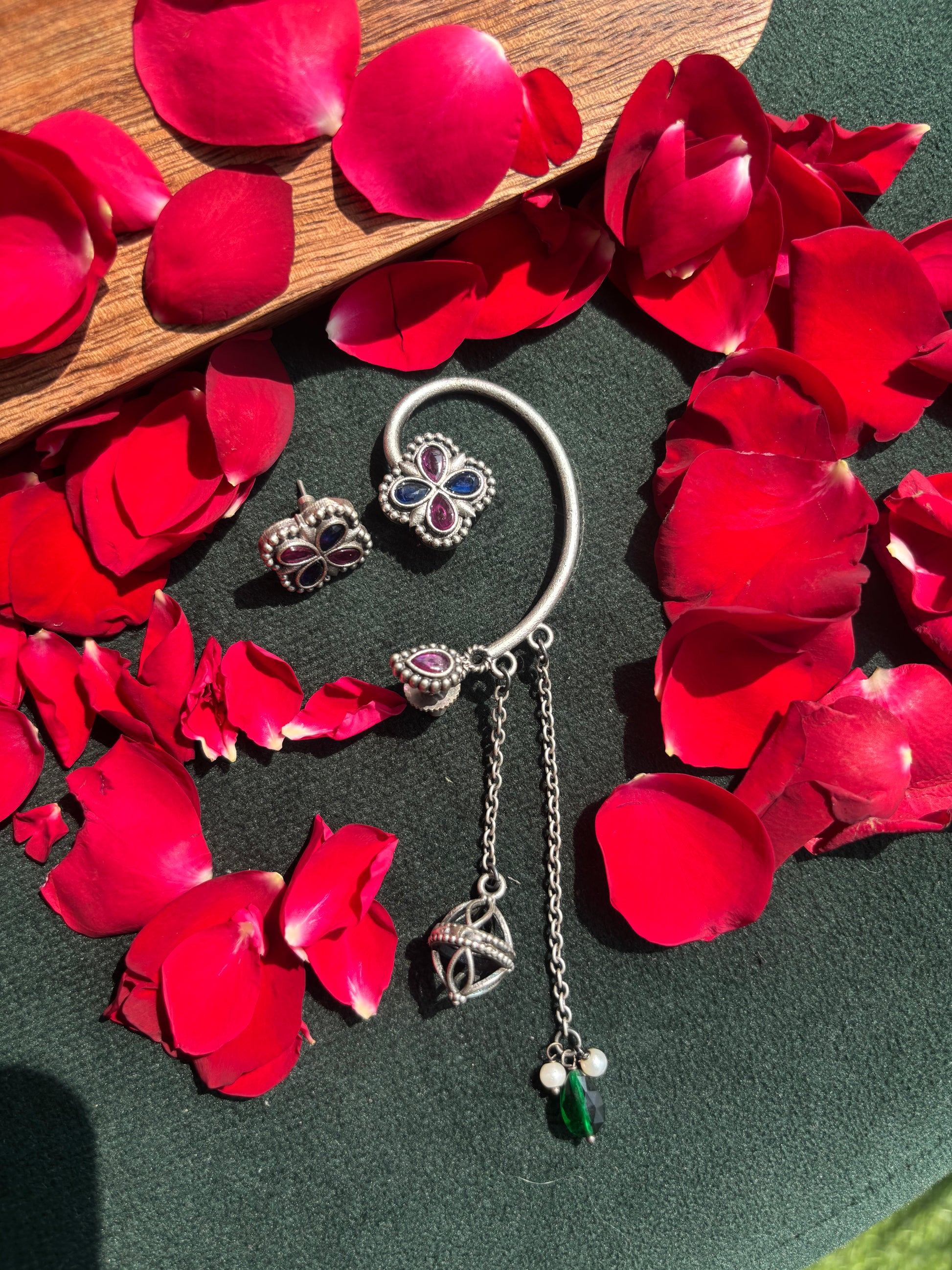 This "Abha" silver replica earcuff is a perfect addition to any jewelry collection. Made from high-quality materials, it offers a timeless and elegant design that will elevate any outfit. Its unique, lightweight construction makes it comfortable to wear all day, while its versatile style allows for effortless pairing with any outfit. Complete your look with this beautiful earcuff and make a statement wherever you go.