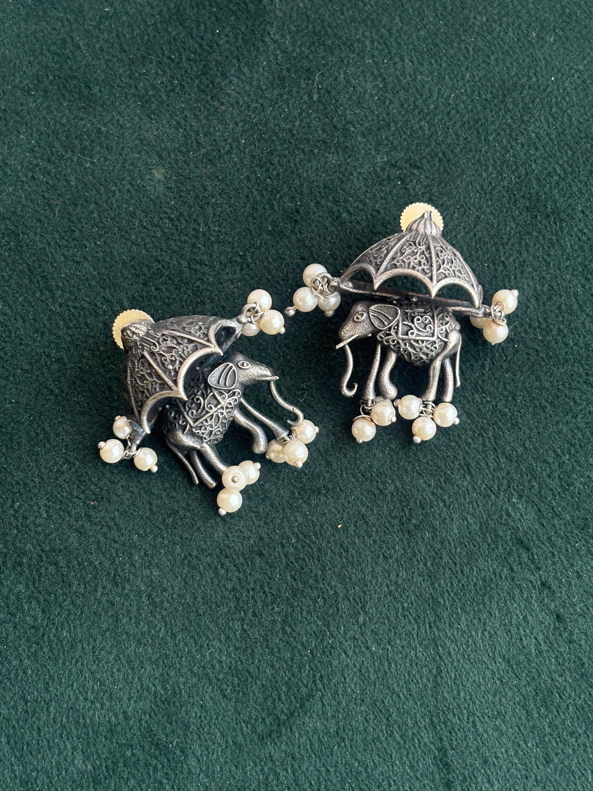 Crafted with intricate design, the "Advika" Silver Replica Earrings feature a stunning elephant motif. Made for those who appreciate intricate craftsmanship, these earrings add a touch of elegance to any outfit. Perfect for everyday wear or special occasions, these earrings are a must-have for any jewellery collection.