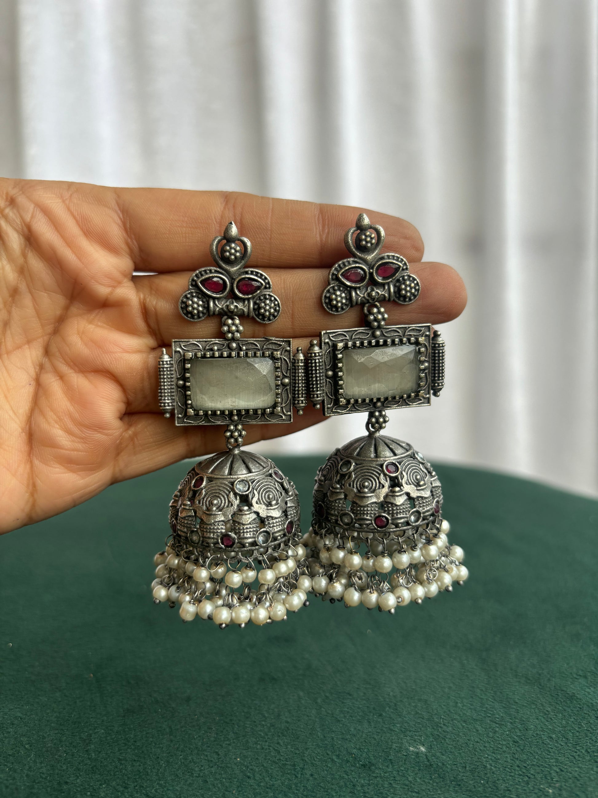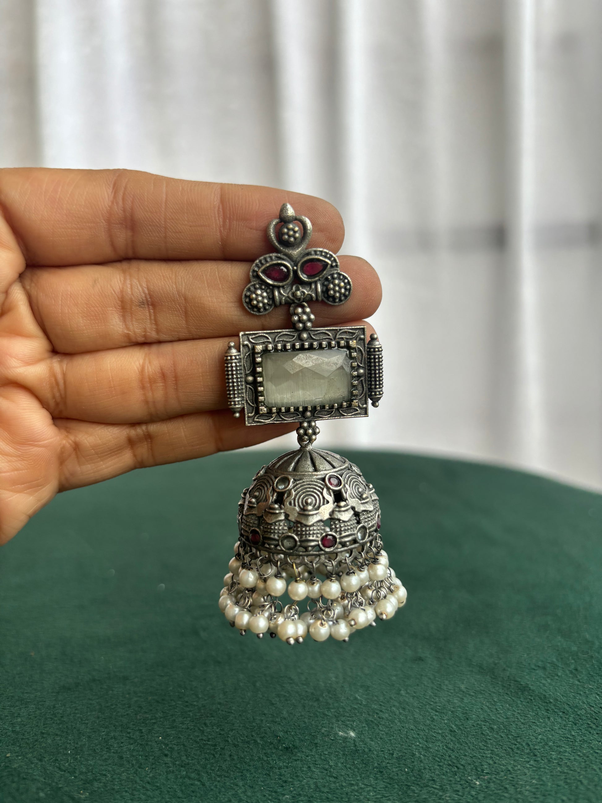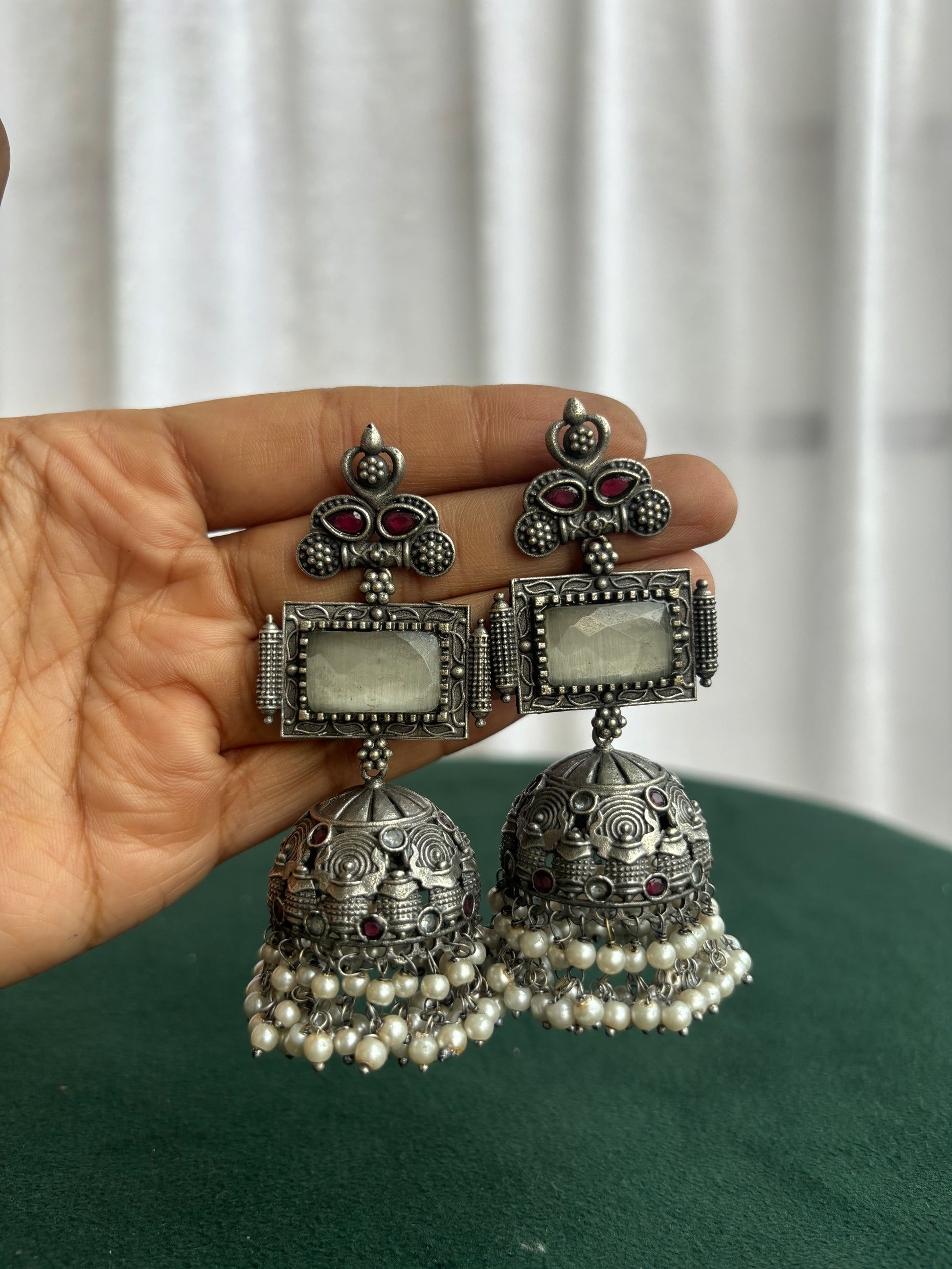 Introducing the "Alani" Silver Replica Jhumka Earrings, expertly crafted for an elegant and timeless look. Made with high-quality silver, these earrings offer both beauty and durability. The intricate design and delicate silhouette make them a must-have for any occasion. Elevate your style with these stunning earrings.