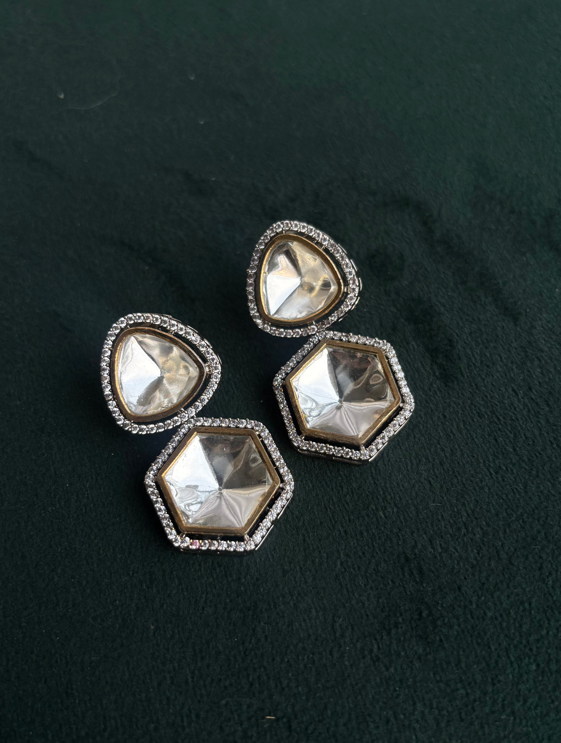 Experience timeless elegance with "Anvika" uncut polki earrings. Handcrafted with exquisite detail, these earrings showcase the beauty of uncut polki stones. Radiating with a vintage charm, they are the perfect accessory for any occasion. Elevate your look with these stunning earrings and make a statement of sophistication and grace.