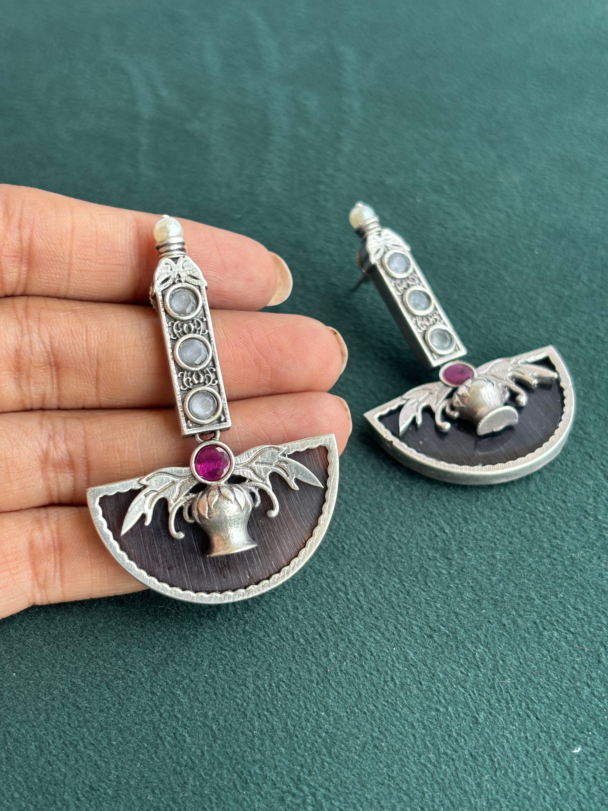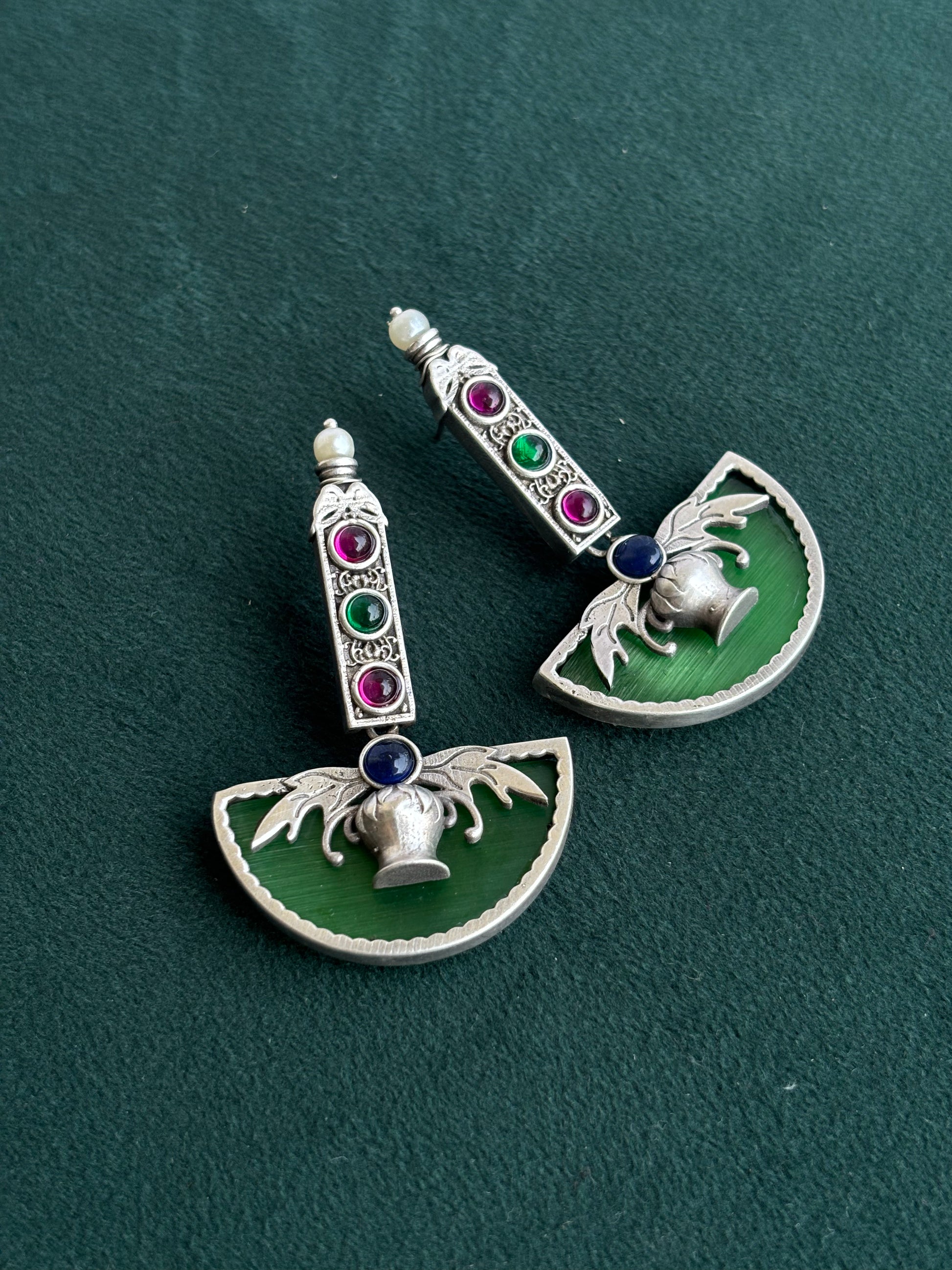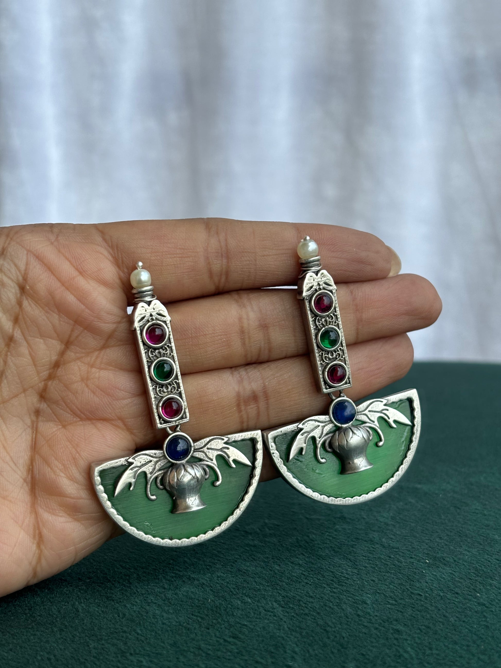 Discover the enchanting beauty and rich heritage of India with Unique Jewellery Studio's "Aria" Silver Replica Earrings. Handcrafted with silver-brass and inspired by traditional designs, these earrings are a stunning addition to our exclusive Antique Collection. Immerse yourself in the beauty of Indian culture with these timeless and unique earrings.