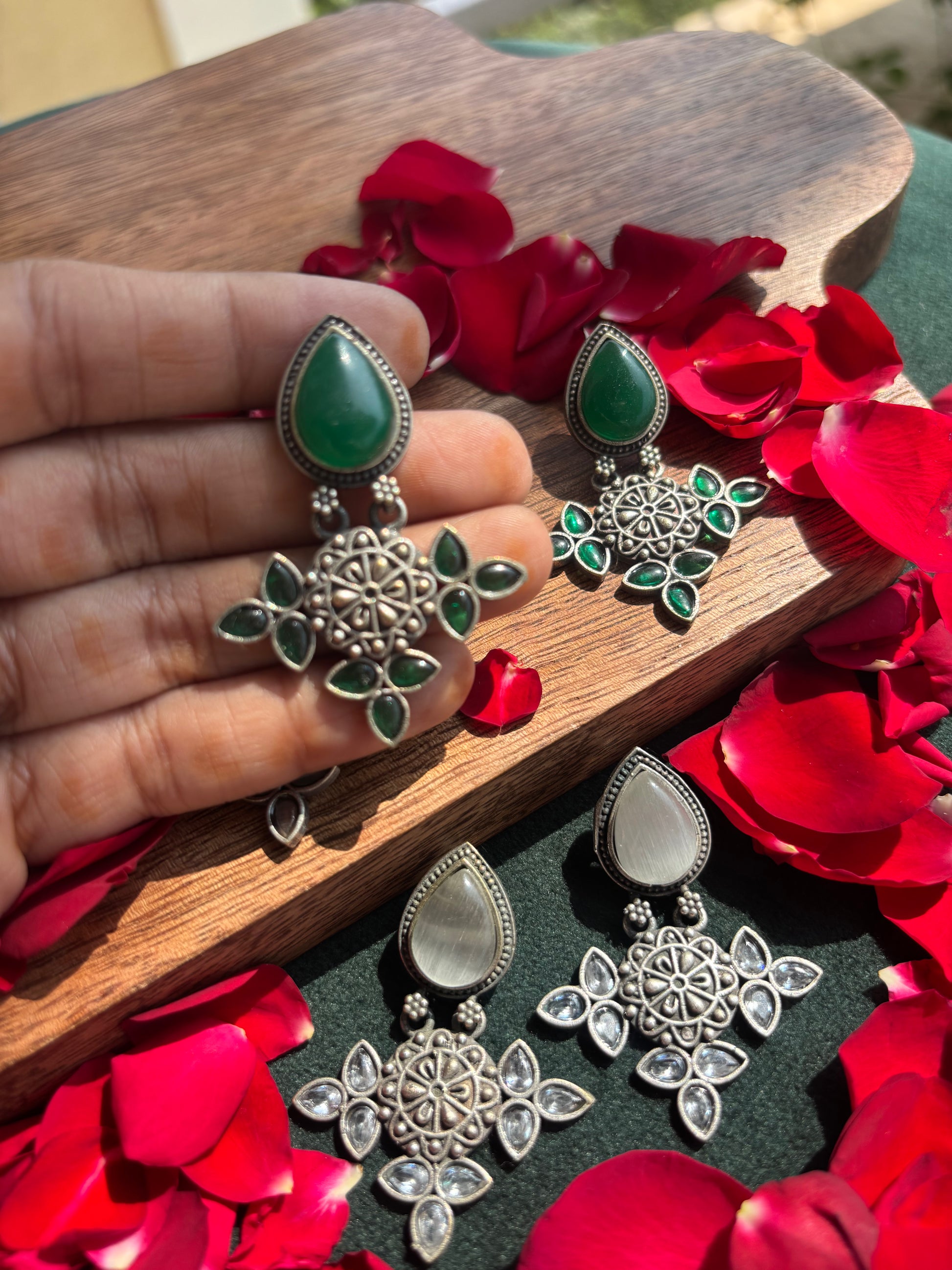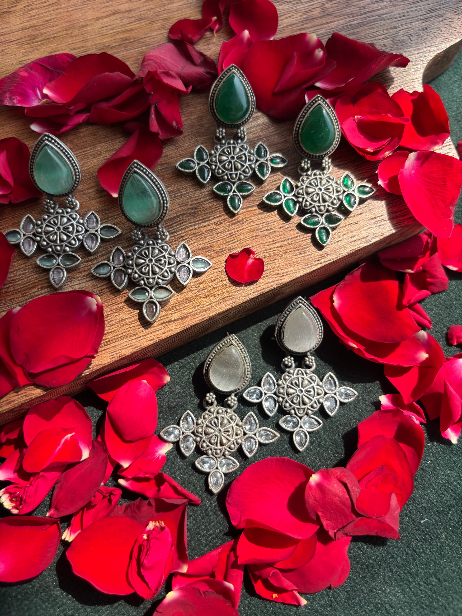 Experience elegance and luxury with our "Arunima" Silver Replica Earrings. Handcrafted with precision and attention to detail, these earrings are the perfect addition to any outfit. Made with high-quality materials, they are durable and long-lasting. Elevate your style with our "Arunima" Silver Replica Earrings.