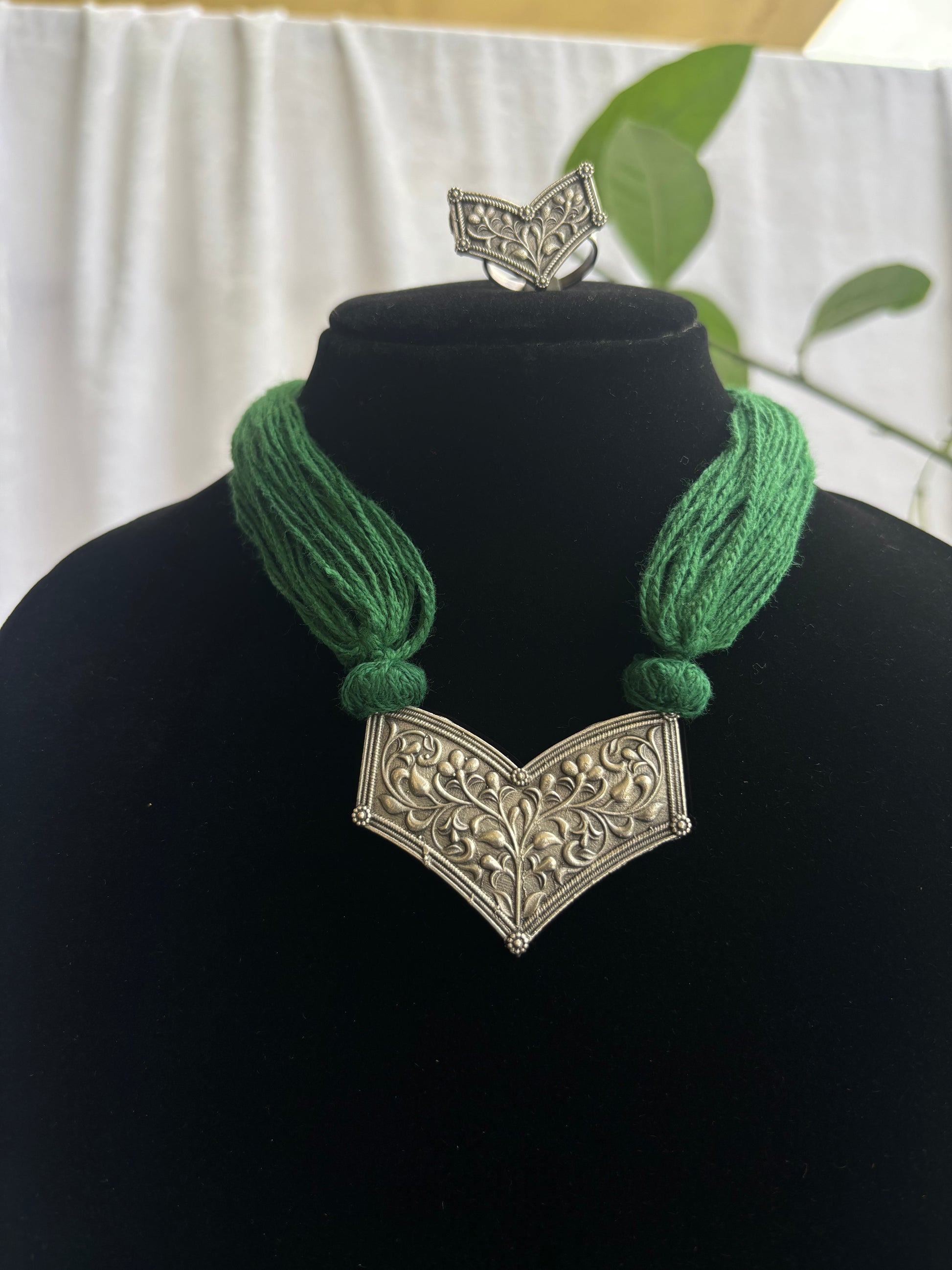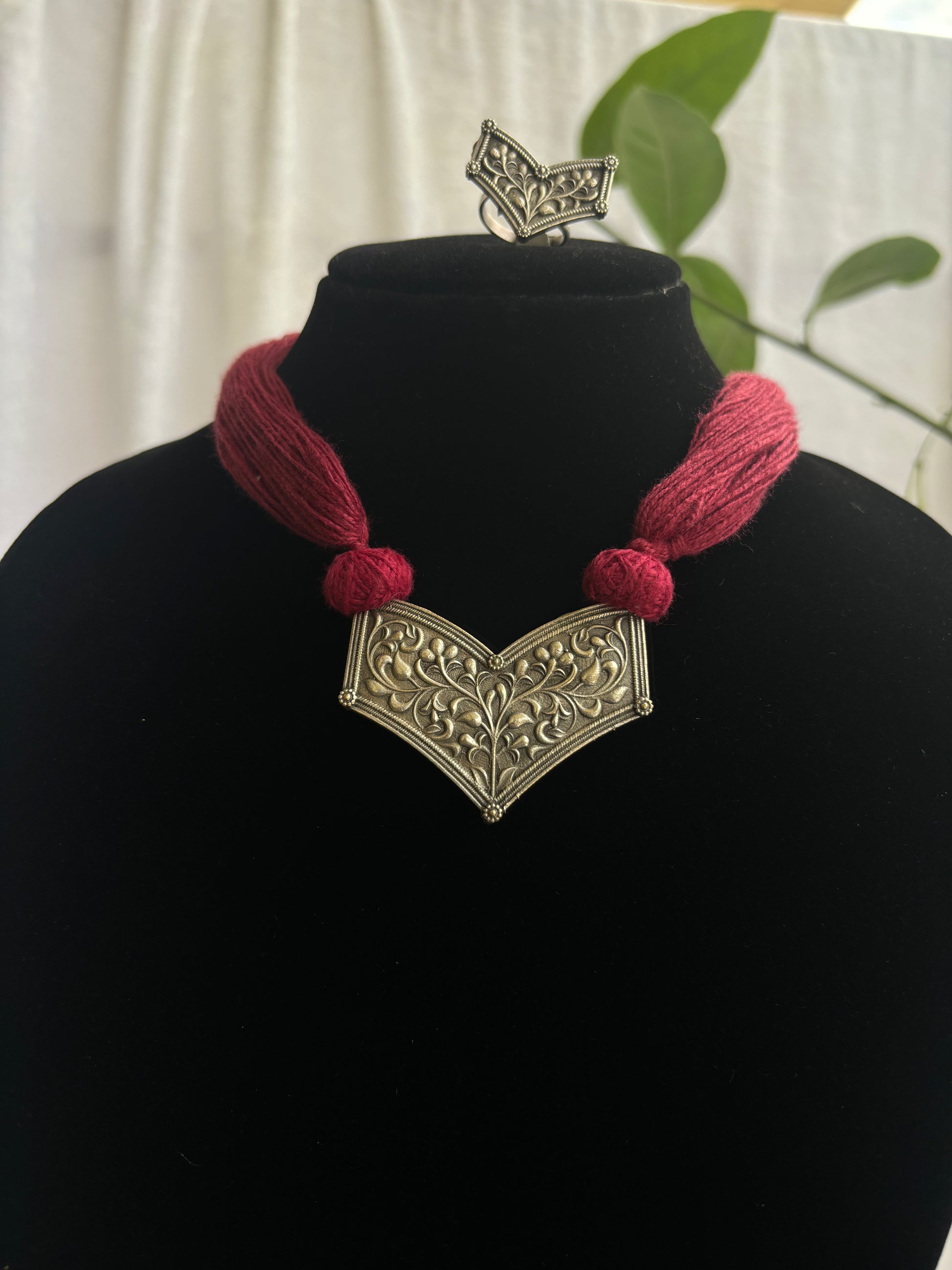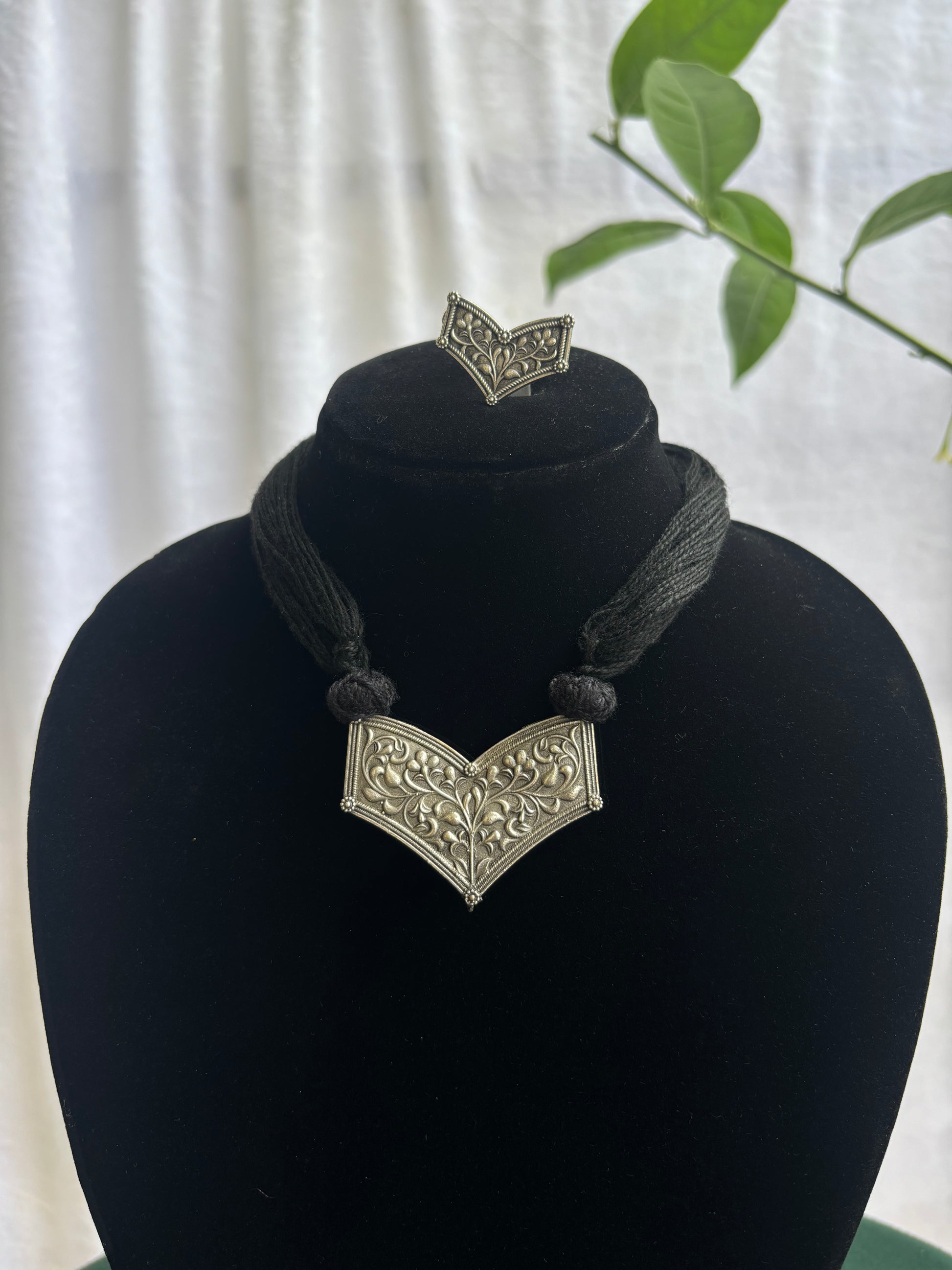 "Bhavanya" Silver Replica Neckpiece | Ring