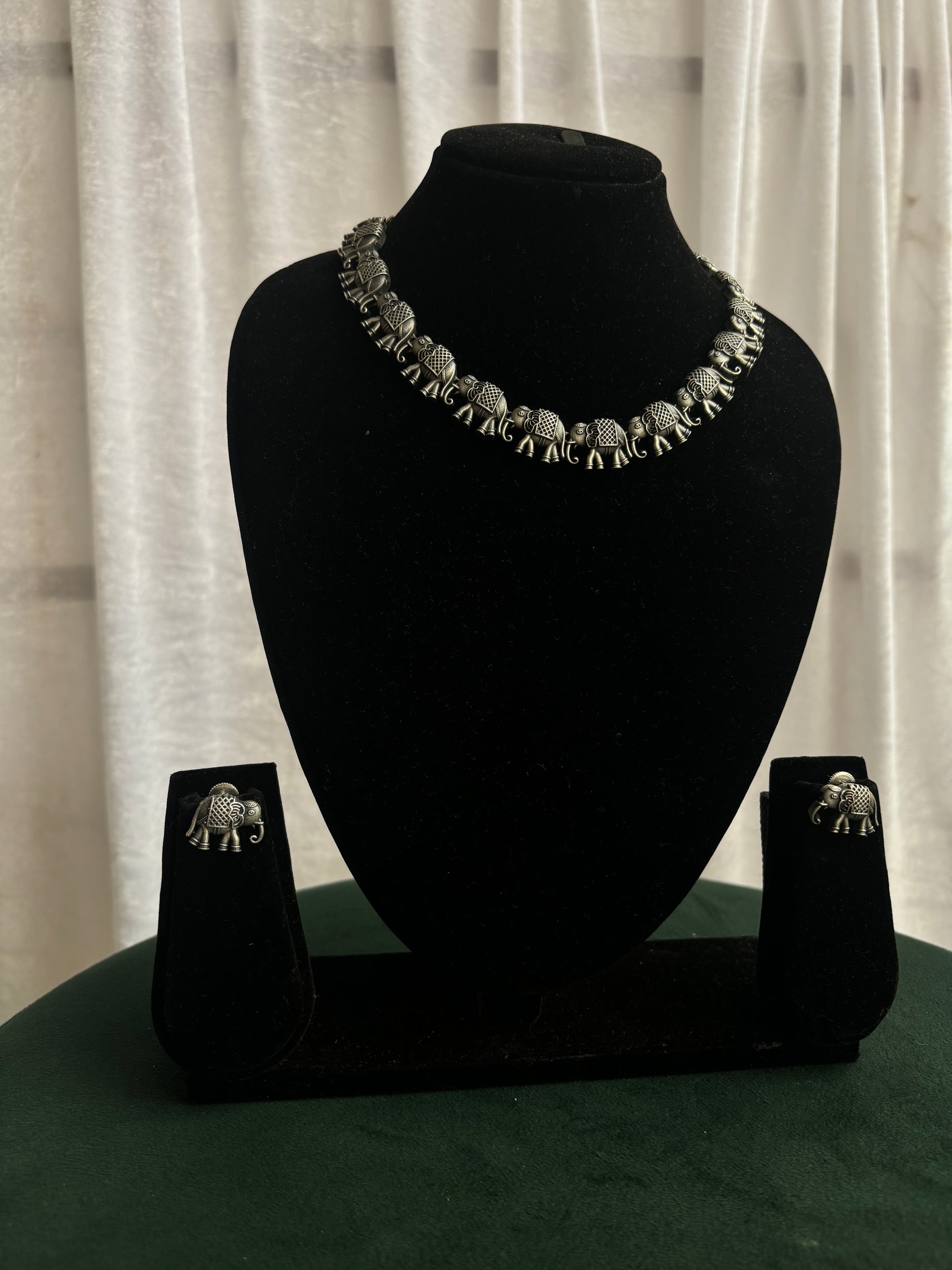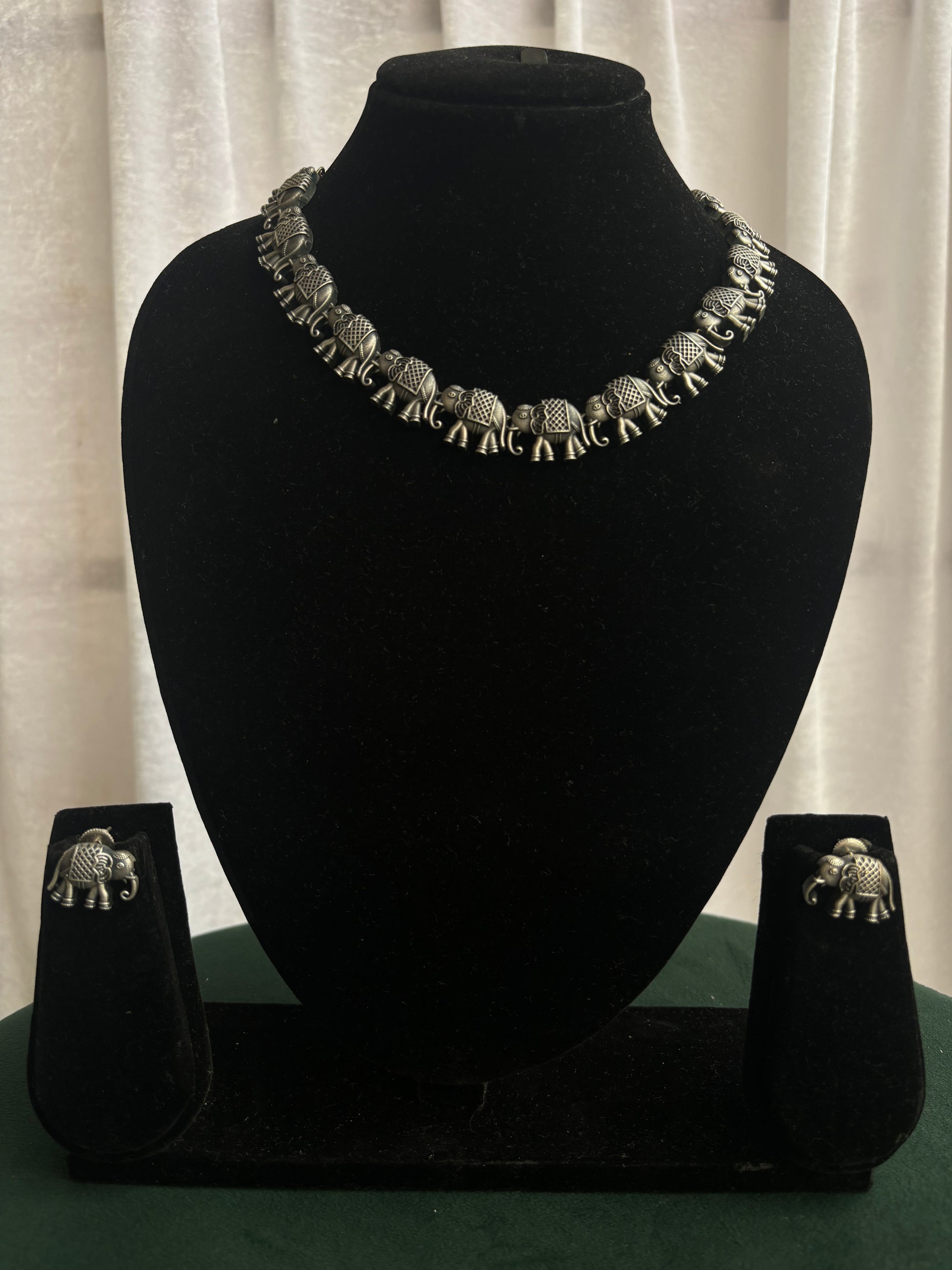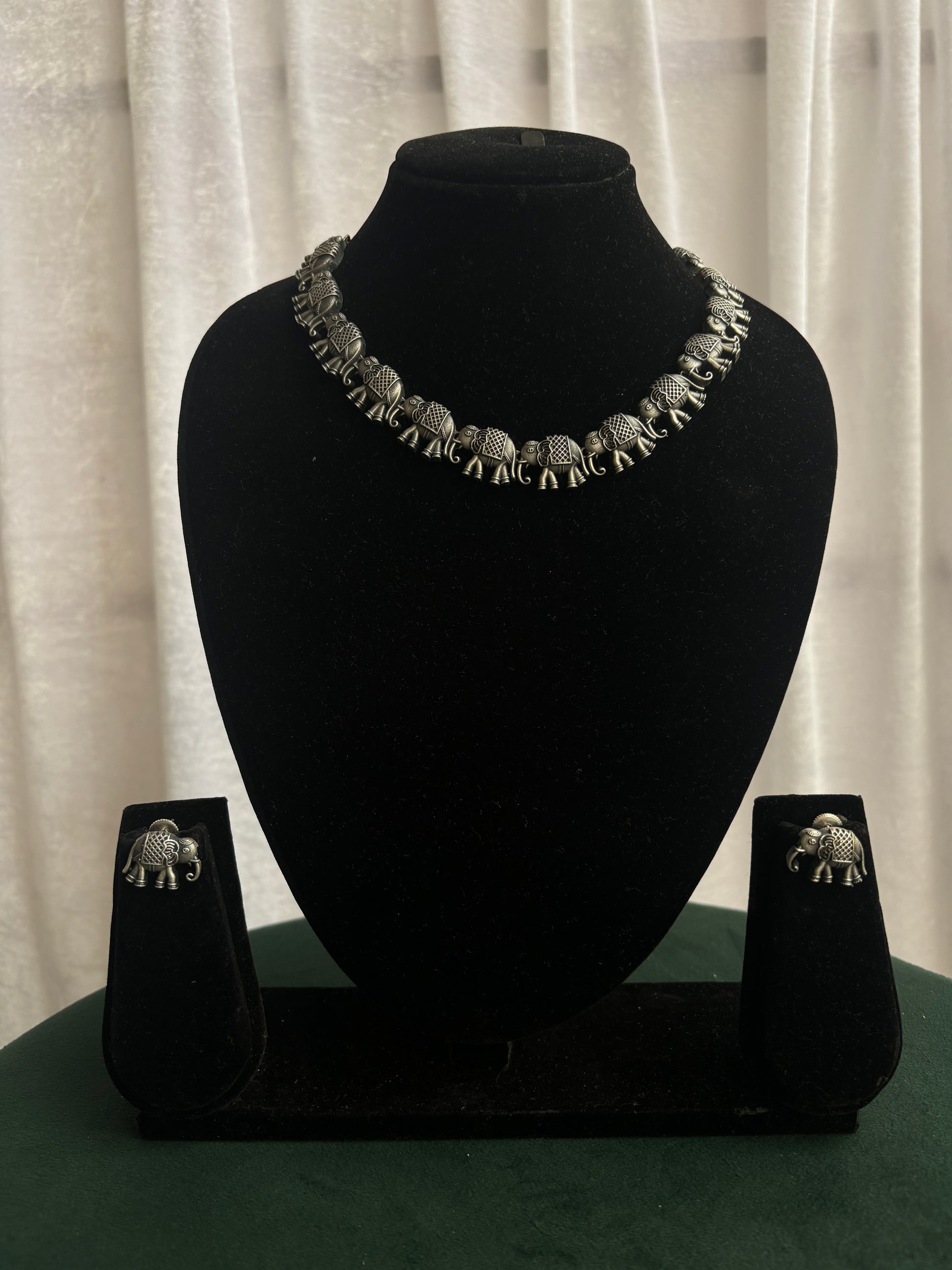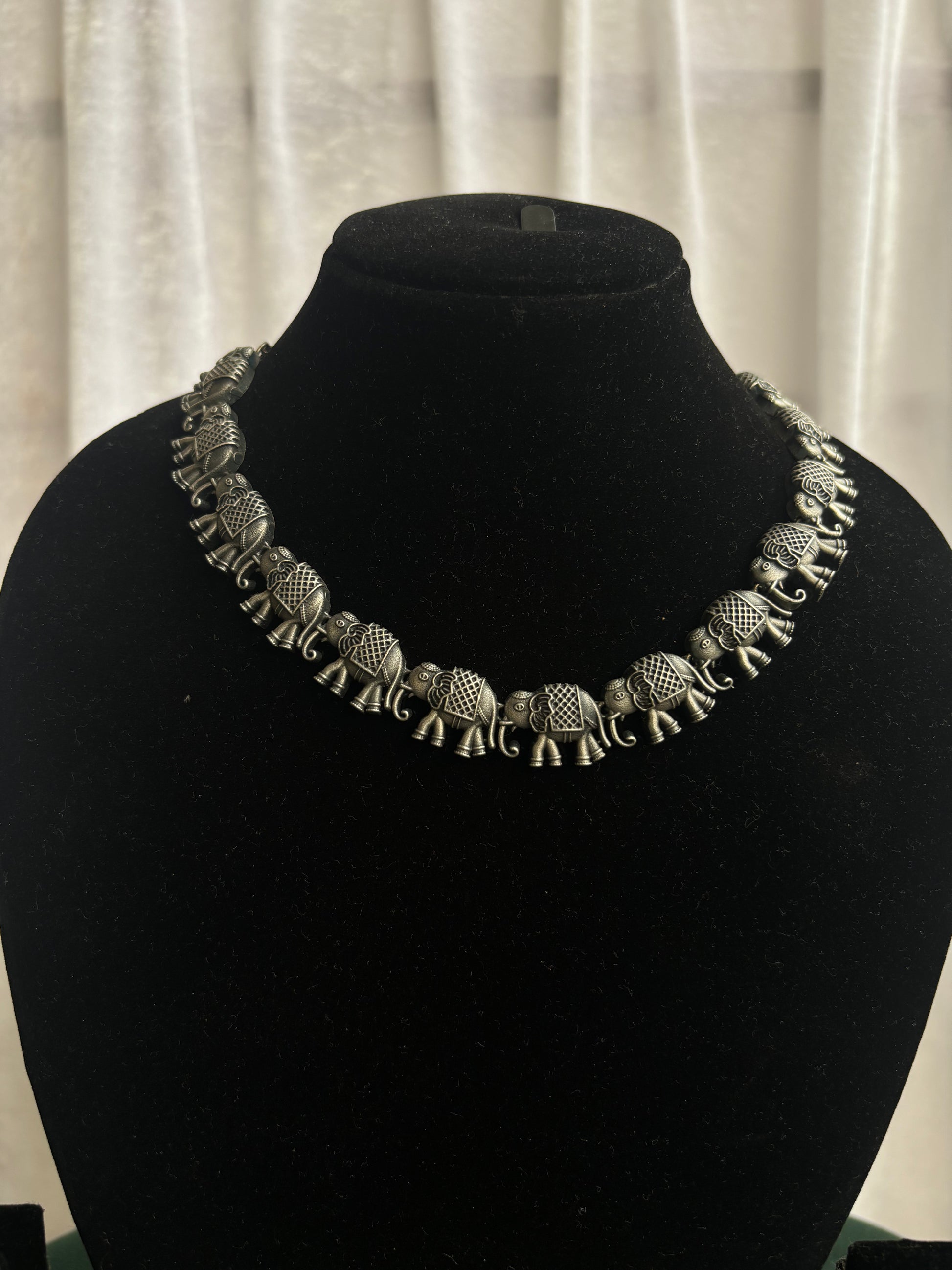 Crafted with a stunning "Jasmine" elephant motif, this neckpiece is perfect for adding a touch of elegance to any outfit. Made with attention to detail, it exudes quality and sophistication. Enhance your look with this unique piece.