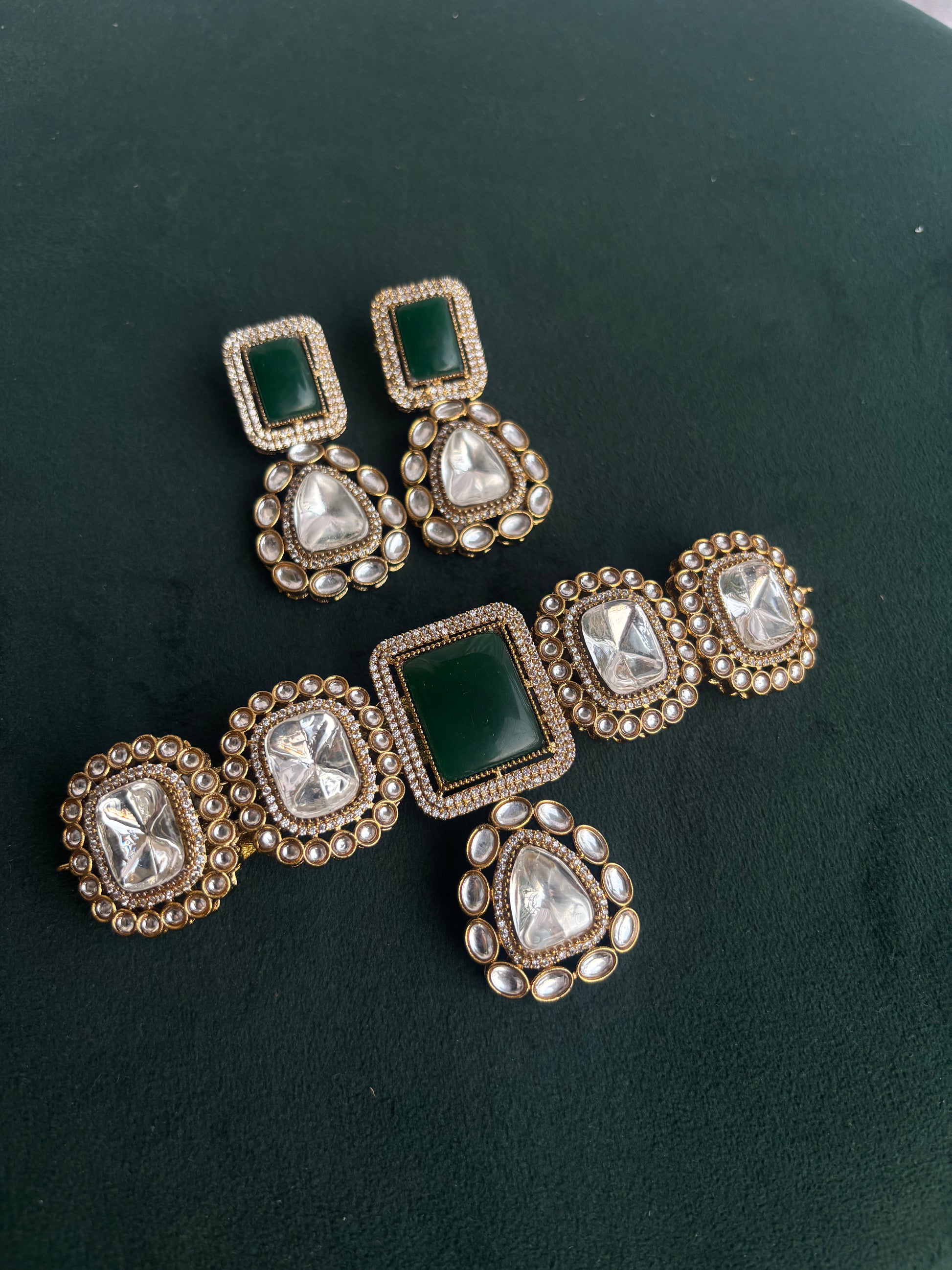 Experience the unique beauty of our "Mishka" Uncut polki & Moissanite Choker. This elegant and sophisticated piece features a combination of uncut polki and Moissanite, creating a stunning contrast that will surely catch attention. The perfect addition to any outfit, this choker is a must-have for any jewellery lover.