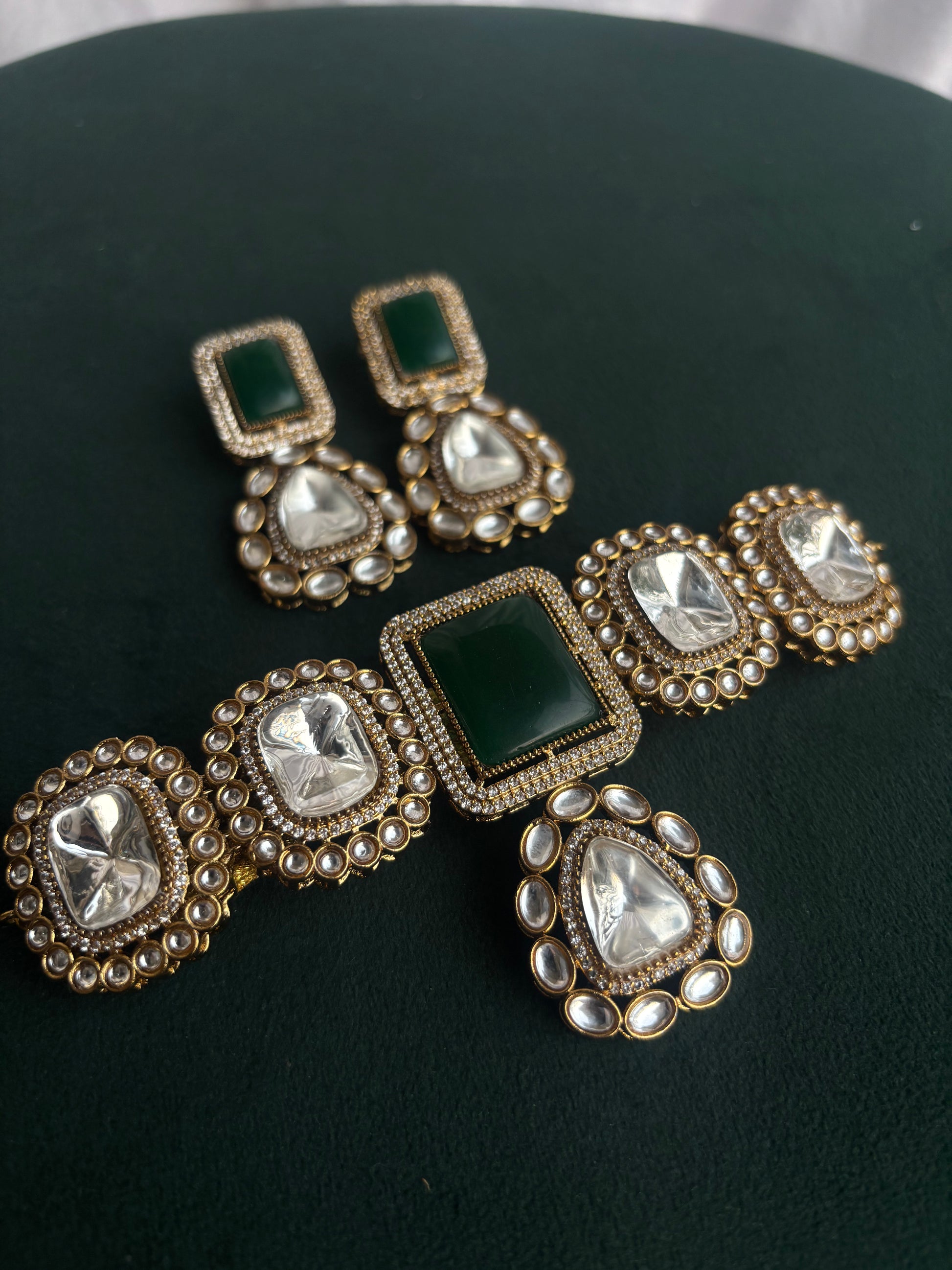 "Mishka" Uncut polki & Moissanite Choker