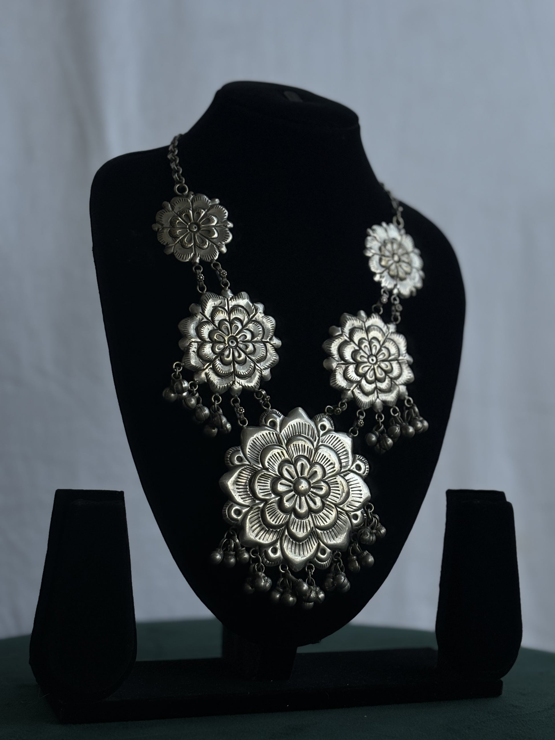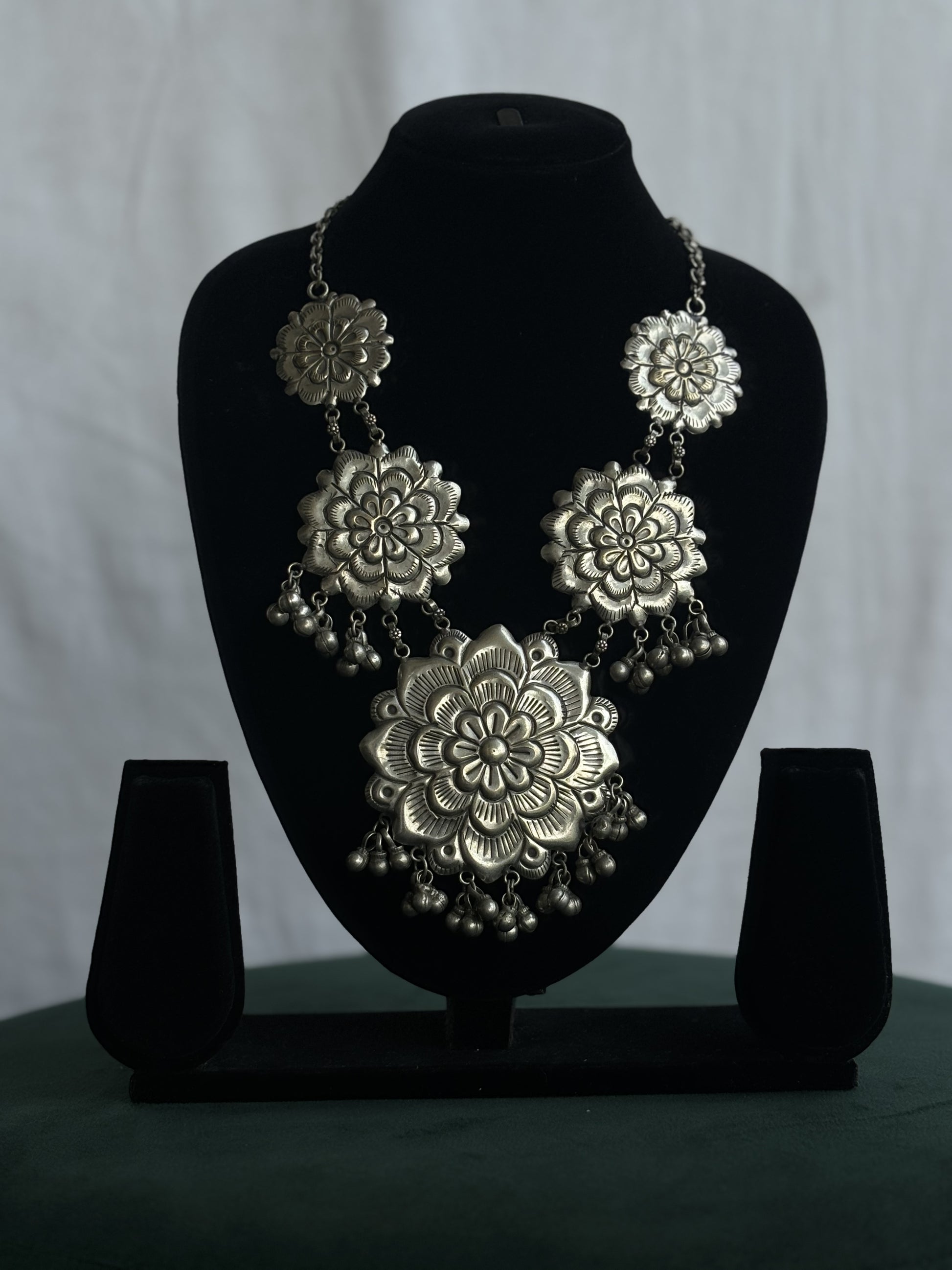 Step into the rich heritage of India with Unique Jewellery Studio's "Nitya" Silver Chain-pendant. This antique earring is crafted with a silver-brass base, showcasing unique design and enchanting beauty. Make a statement and elevate your style with part of our exclusive Antique Collection.