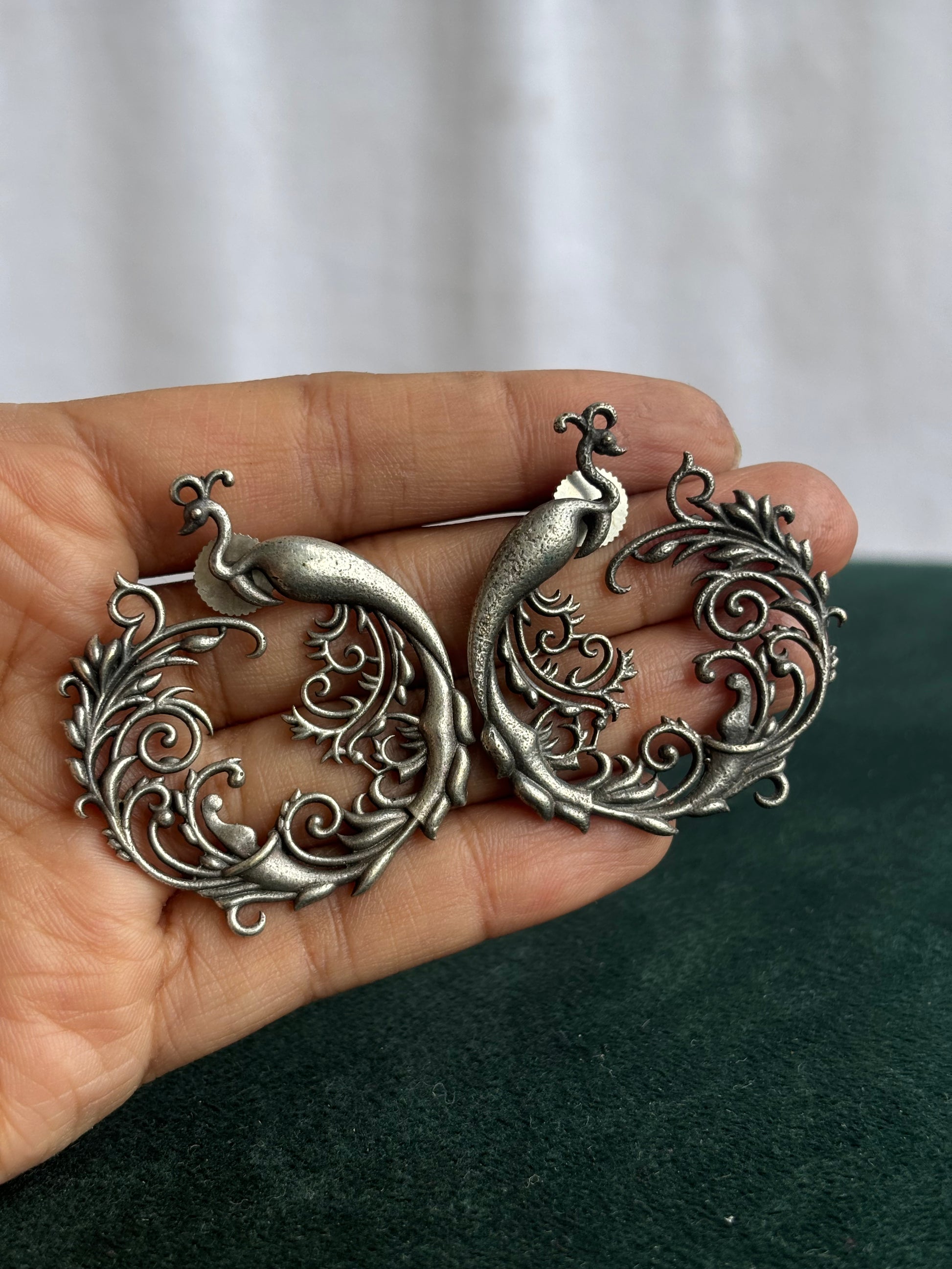Unveil the alluring legacy of India with Unique Jewellery Studio's "Paravi" Silver Replica Earrings. Made from brass, this antique piece shines with traditional elegance and charm.