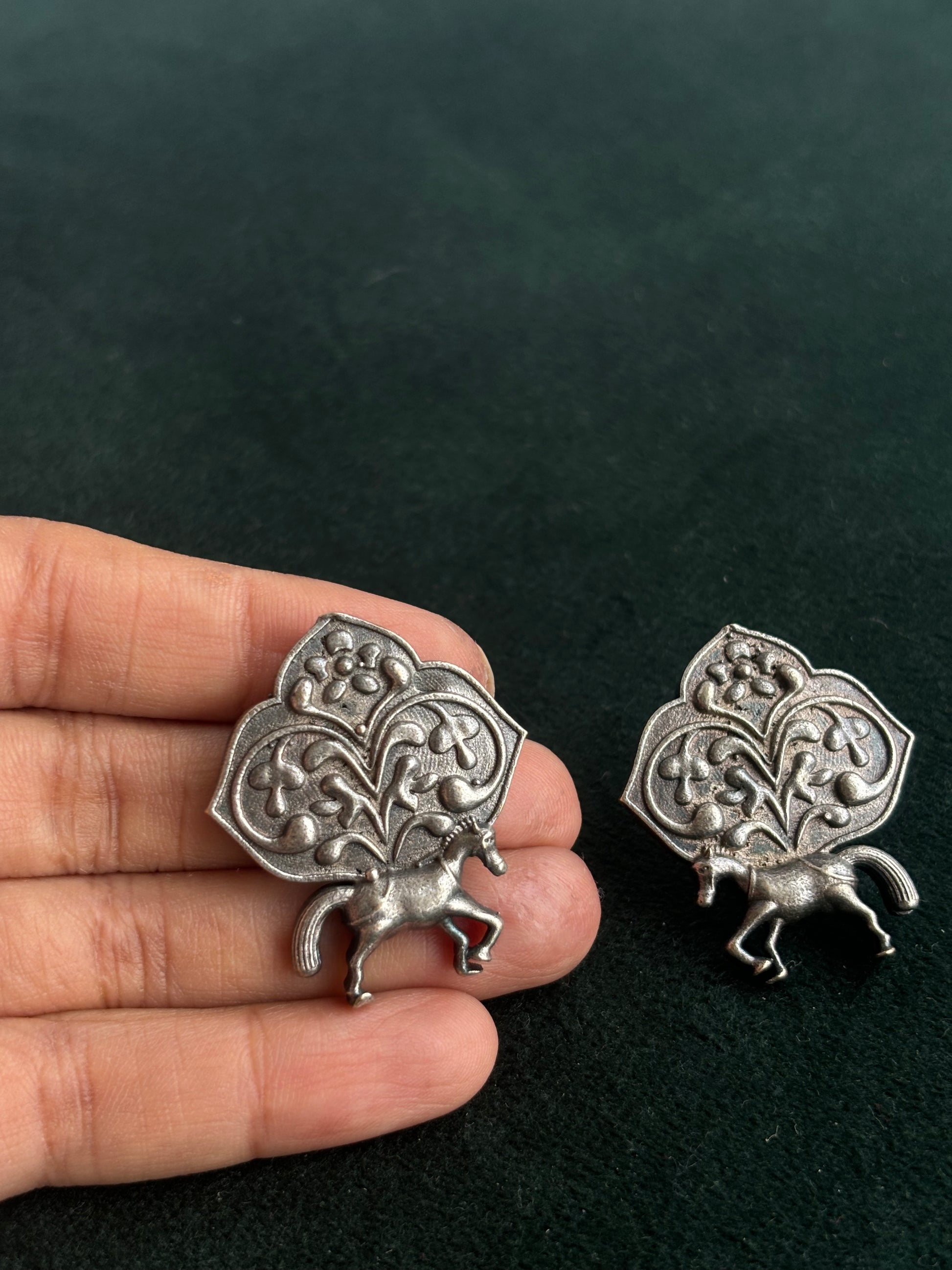 Experience the timeless elegance of Indian culture with Unique Jewellery Studio's "Parmeshwari" Silver Replica Earrings. Crafted with brass and featuring intricate antique details, these earrings are a must-have for any jewellery lover. Add a touch of heritage to your collection.