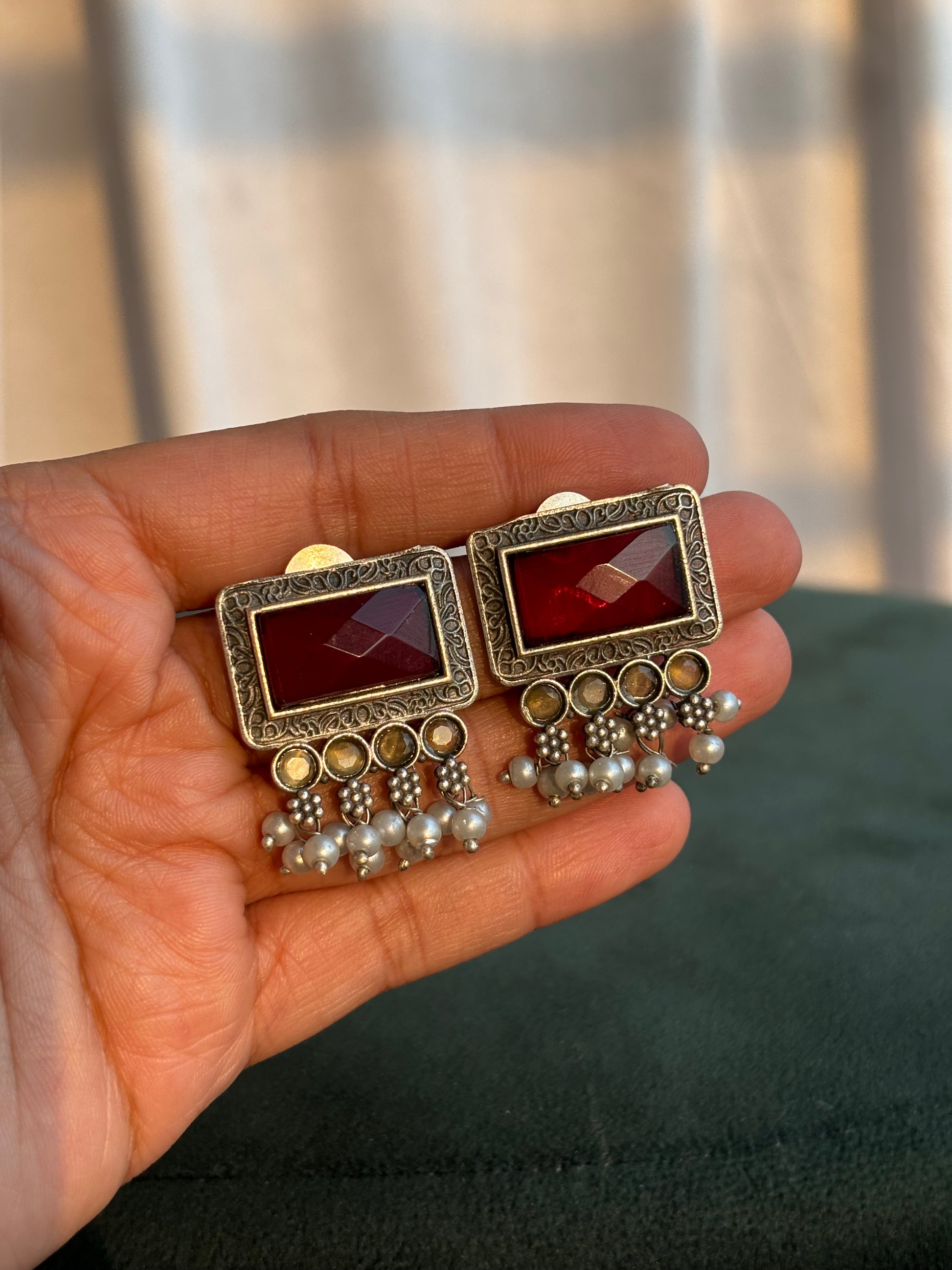 Explore the captivating beauty and cultural legacy of India with Unique Jewellery Studio's "Upala" Silver Replica Earrings. Part of our distinguished Antique Collection, these earrings are crafted with brass and exude a timeless charm. Elevate your style with this exquisite creation.