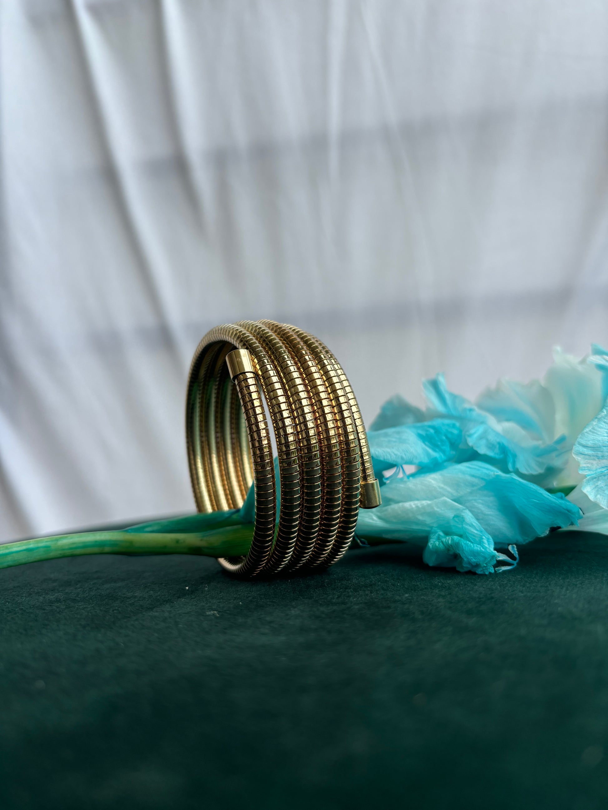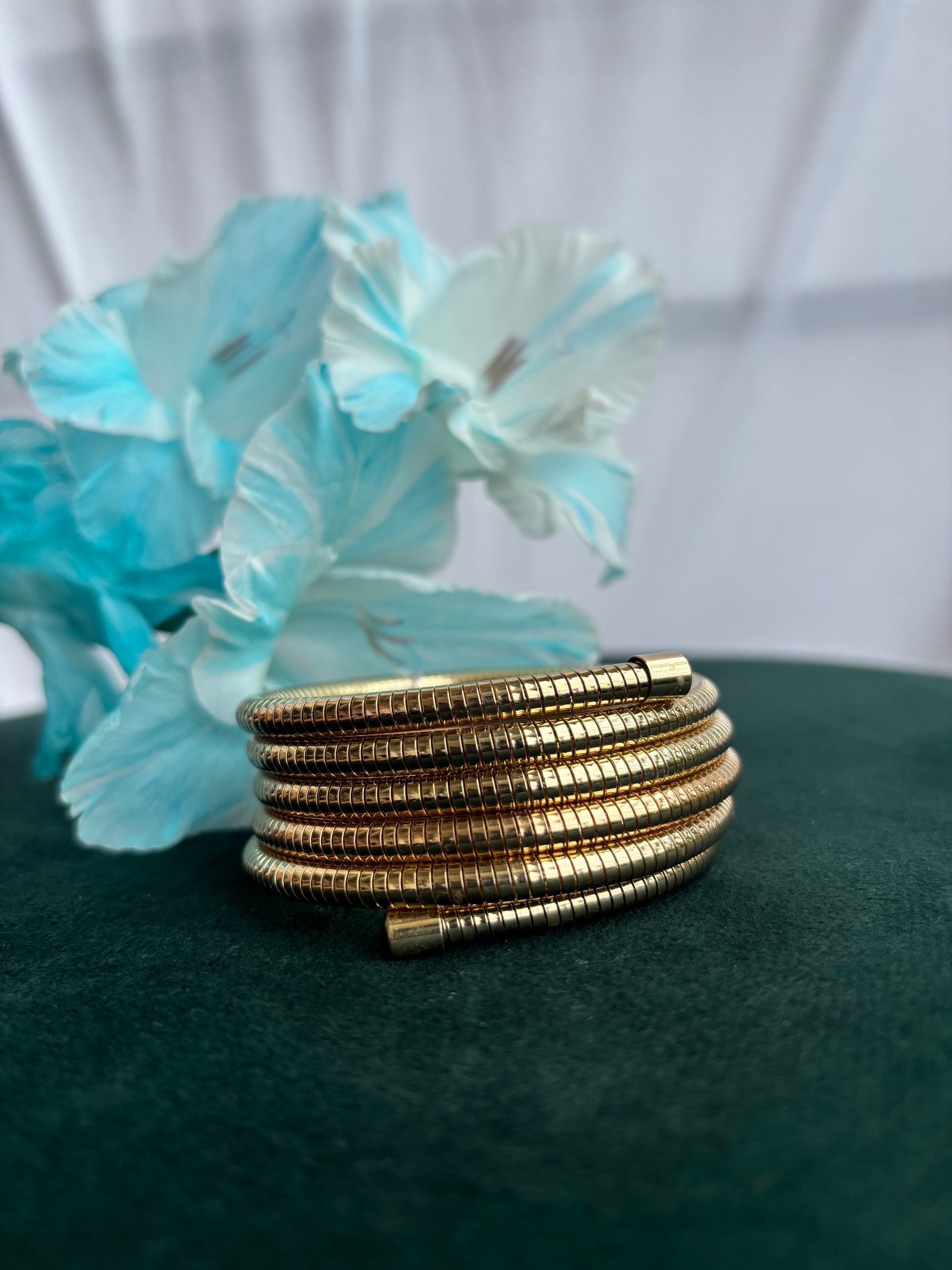 Introducing "Vanessa" - the perfect anti-tarnish spiral bracelet. Made with high-quality materials, this free-size bracelet guarantees long-lasting shine and beauty. Say goodbye to tarnishing and hello to effortless style with "Vanessa."