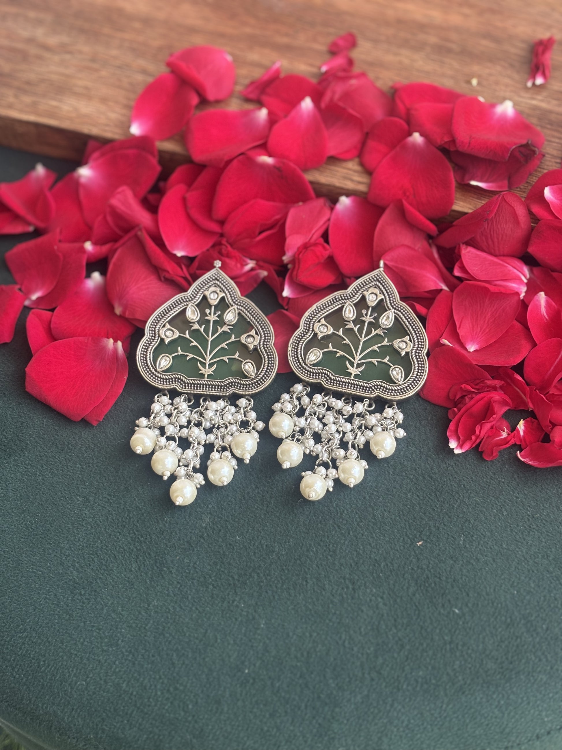 Crafted with precision, these "Yasti" Silver Replica Earrings are a stunning addition to any jewellery collection. Made with high-quality materials and designed to replicate the elegance of silver, these earrings exude sophistication and class. Perfect for any occasion, they are a must-have for those who appreciate timeless and exquisite pieces.